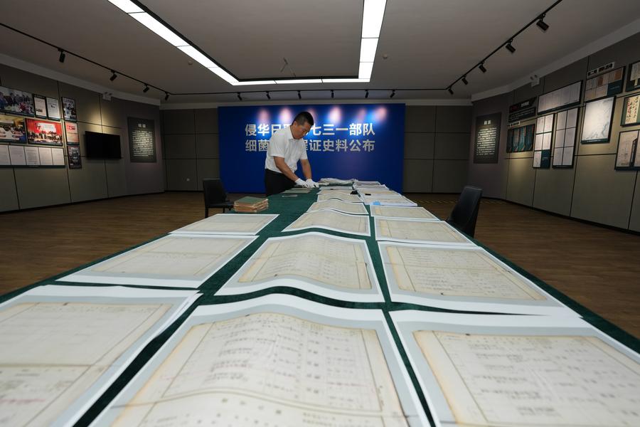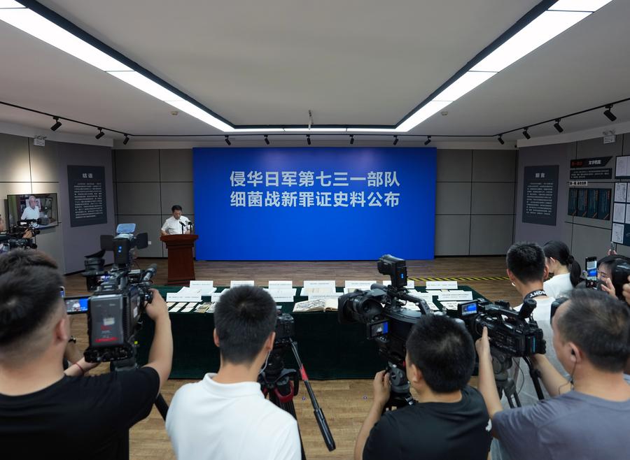 HARBIN, Aug. 15 (Xinhua) -- New evidence of Unit 731 -- a Japanese germ-warfare unit that operated during World War II -- was unveiled on Friday in Harbin, capital of northeast China's Heilongjiang Province. The new evidence includes 3,010 pages of archive documents, 194 minutes of video footage, 312 photographs, 12 postcards and eight letters, exposing Japanese germ-warfare crimes in detail.