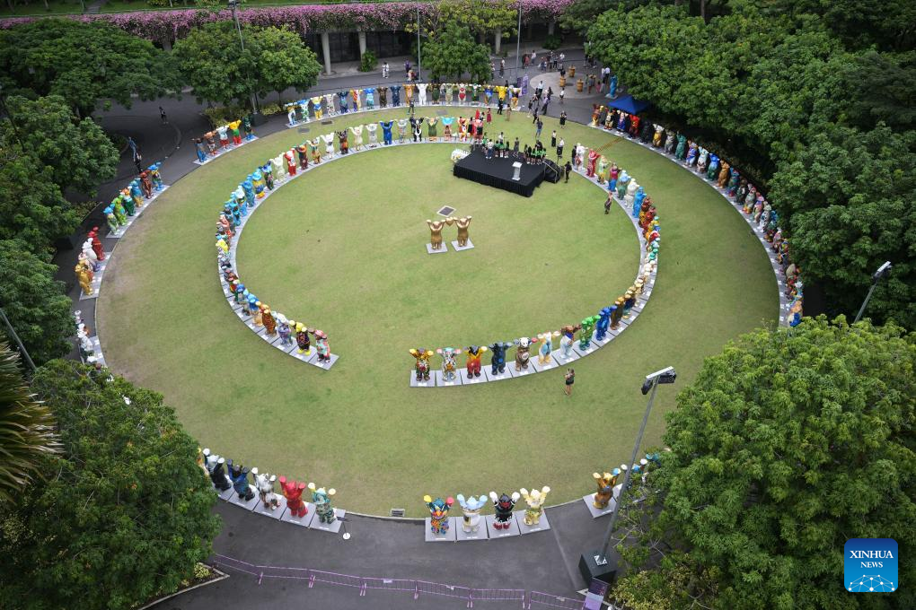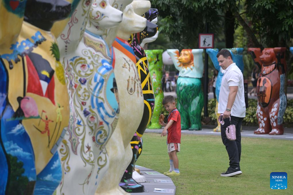 People view the life-size bears of "United Buddy Bears" exhibition at the Singapore's Gardens by the Bay on Aug. 14, 2025. (Photo by Then Chih Wey/Xinhua)