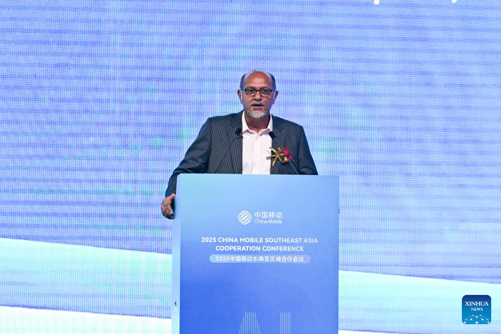 Malaysian Digital Minister Gobind Singh Deo addresses the 2025 China Mobile Southeast Asia Cooperation Conference in Kuala Lumpur, Aug. 13, 2025. (Xinhua/Cheng Yiheng)