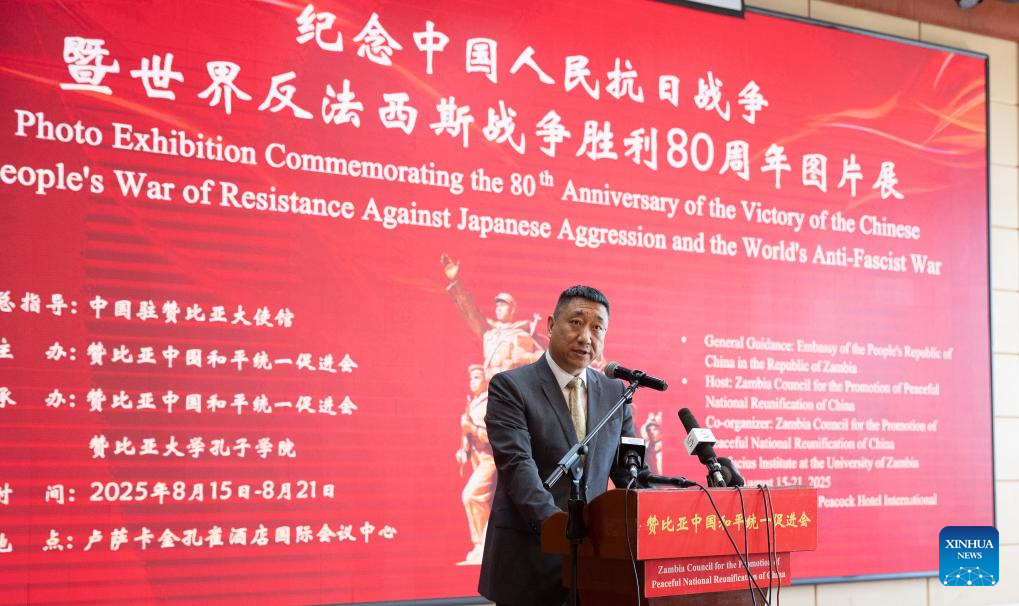 LUSAKA, Aug. 15 (Xinhua) -- A photo exhibition commemorating the 80th anniversary of the victory of the Chinese People's War of Resistance Against Japanese Aggression and the World Anti-Fascist War opened in Lusaka, Zambia's capital, on Friday.