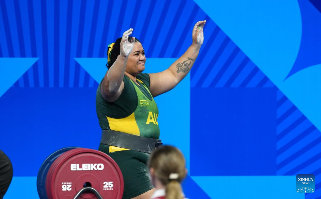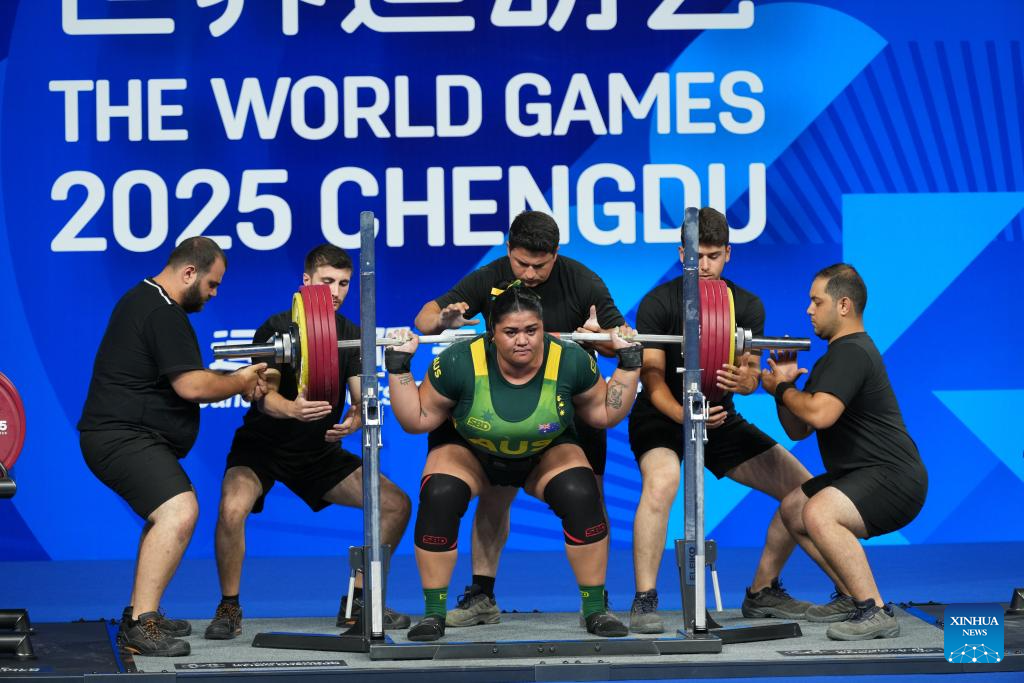 Natalie Soli'Ai Laalaai of Australia competes during the Women's Super Heavyweight Final of Powerlifting event at The World Games 2025 in Chengdu, southwest China's Sichuan Province, Aug. 15, 2025. (Xinhua/Xu Suhui)