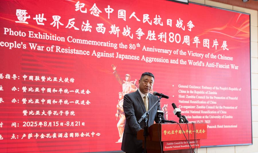 LUSAKA, Aug. 16 (Xinhua) -- A photo exhibition commemorating the 80th anniversary of the victory of the Chinese People's War of Resistance Against Japanese Aggression and the World Anti-Fascist War opened in Lusaka, Zambia's capital, on Friday.