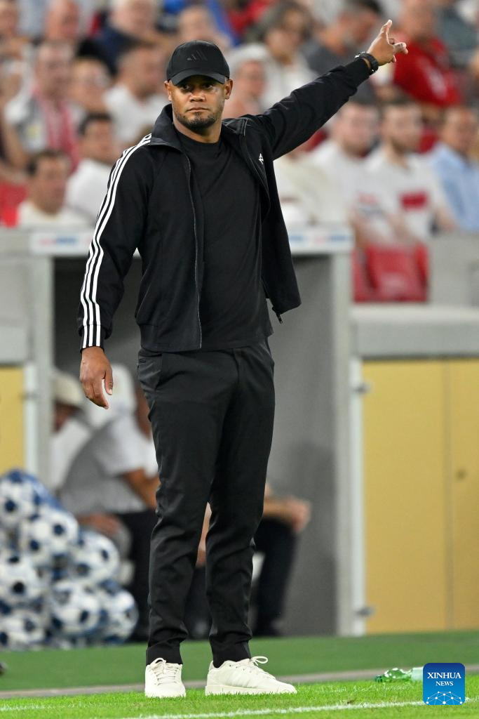 Vincent Kompany, head coach of Bayern Munich, instructs during the 2025 Franz Beckenbauer Supercup final match between Bayern Munich and VfB Stuttgart in Stuttgart, Germany, Aug. 16, 2025. (Photo by Ulrich Hufnagel/Xinhua)