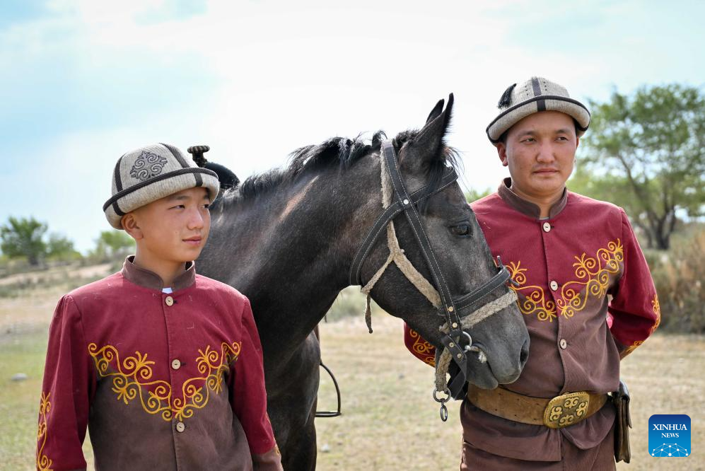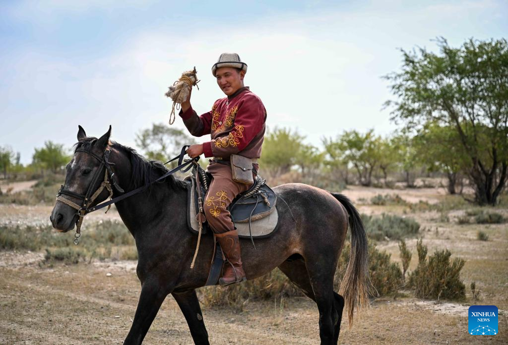 The herders living in eastern Kyrgyzstan inherited the hunting customs of their ancestors, and still maintain the tradition of taming falcons and hunting dogs. (Xinhua/Li Renzi)