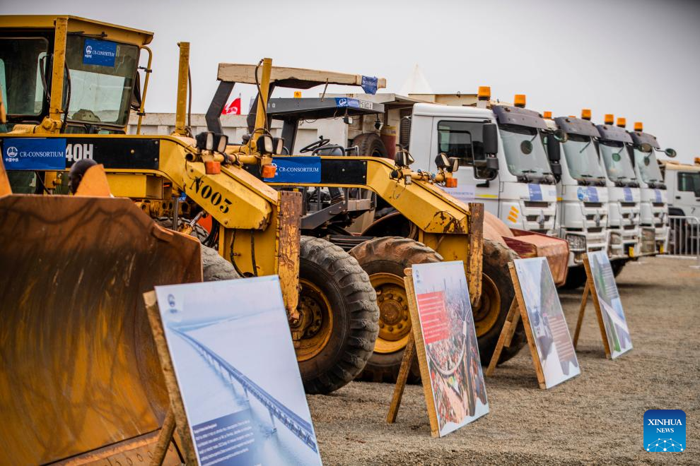 This photo shows the construction equipment at the groundbreaking ceremony for a cross-border railway project linking Uvinza in western Tanzania to Musongati in eastern Burundi, in Musongati, Burundi, Aug. 16, 2025.
