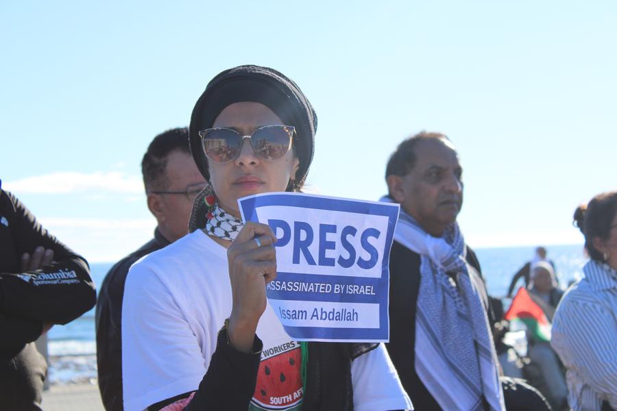 South African journalists and media workers led a march in Sea Point, Cape Town, on Sunday, calling for greater protection for Palestinian journalists in Gaza and expressing solidarity with their slain colleagues.