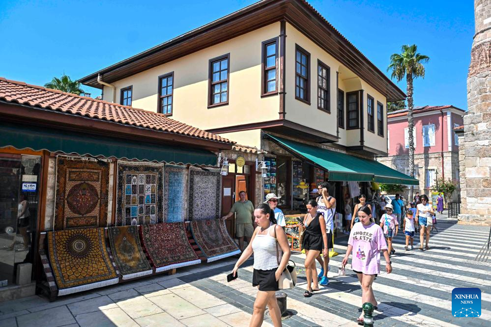 ANTALYA, Türkiye, Aug. 18 (Xinhua) -- In Antalya's old city of Kaleici, shopkeepers watch as tourists duck into shaded cafes. At the harbour, excursion boats stay moored through the midday heat, their crews waiting for cooler hours.
