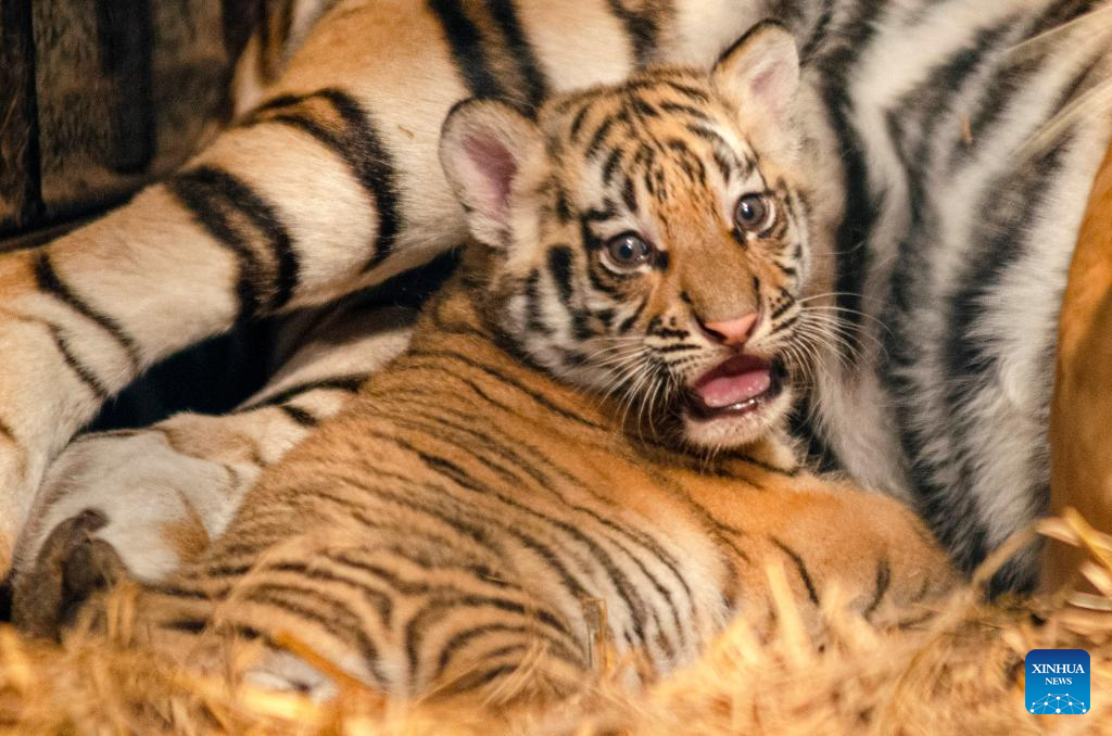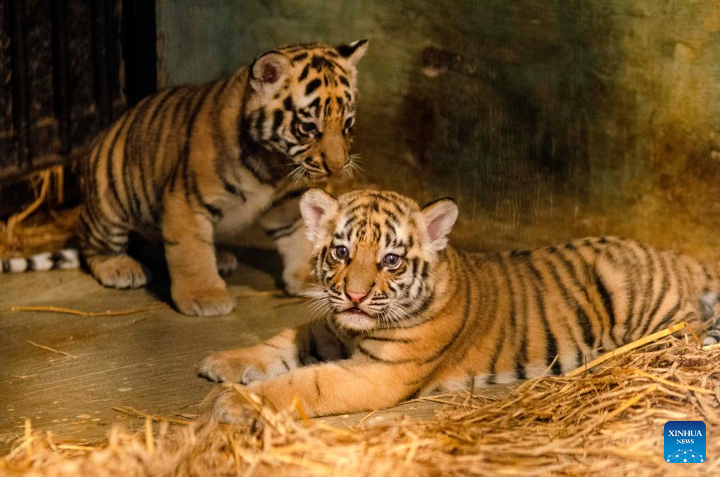 Bengal tiger cubs are pictured at Bandung Zoo in West Java, Indonesia, on Aug. 18, 2025. Two male Bengal tiger cubs were born here on July 12. (Photo by Septianjar Muharam/Xinhua)