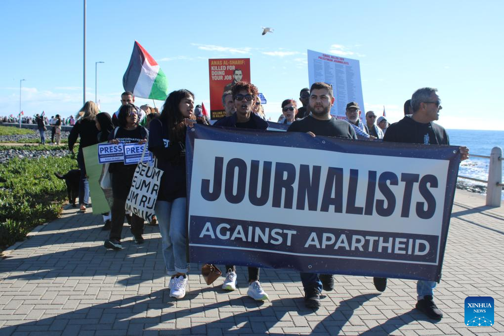CAPE TOWN, Aug. 17 (Xinhua) -- South African journalists and media workers led a march in Sea Point, Cape Town, on Sunday, calling for greater protection for Palestinian journalists in Gaza and expressing solidarity with their slain colleagues.