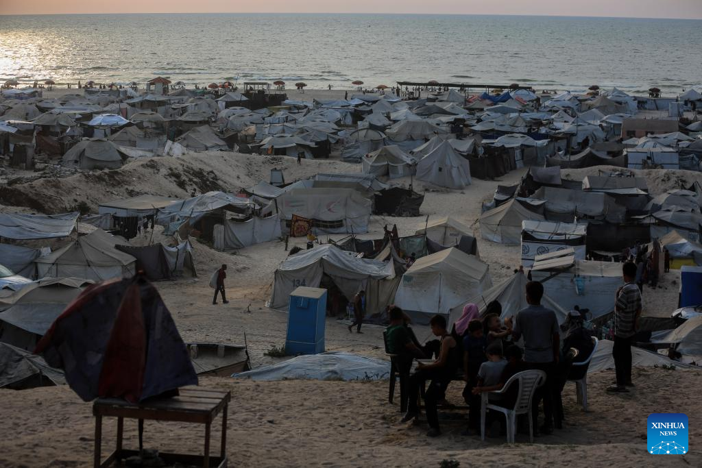 (250819) -- GAZA, Aug. 19, 2025 (Xinhua) -- Tents for displaced Palestinians are seen near a beach in Gaza City on Aug. 10, 2025.