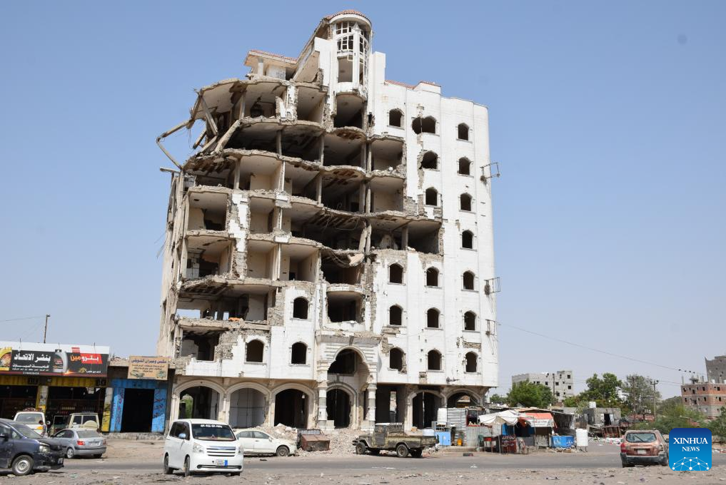 A building destroyed in conflicts between Yemen's government forces and the Houthi group is seen on the outskirts of Aden, Yemen, Aug. 11, 2025.