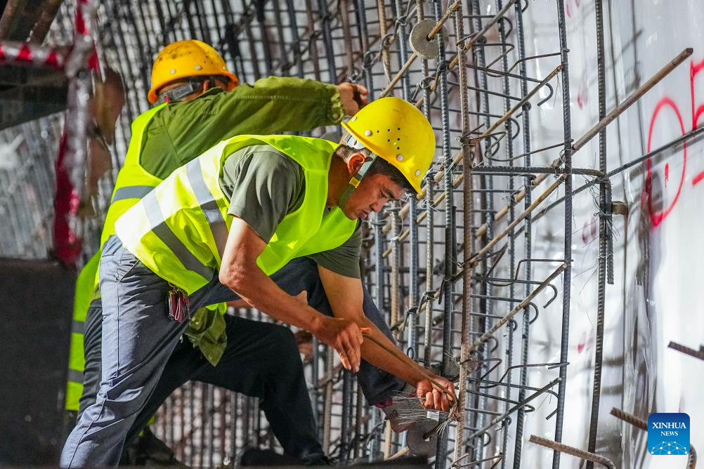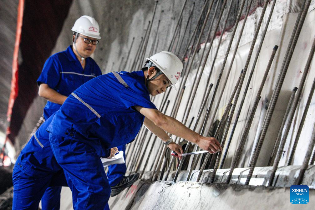 Workers work at the construction site of Binghui tunnel in Yiliang county of Zhaotong, southwest China's Yunnan Province, Aug. 19, 2025. As a key project of the Chongqing-Kunming high-speed railway, Binghui tunnel, with a total length of 21.17 kilometers, was successfully completed here on Tuesday.