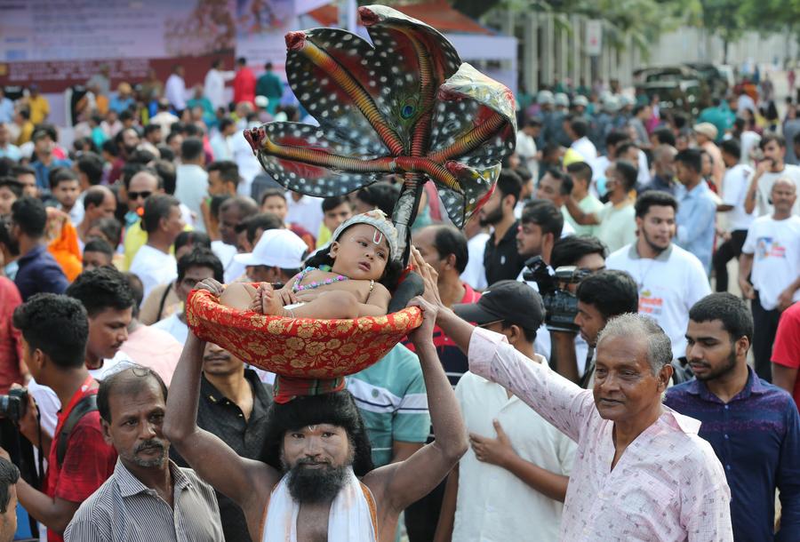 An aerial drone photo taken on Aug. 18, 2025 shows the construction site of the Quxi River double-track bridge along the Chongqing-Wanzhou high-speed railway in Chongqing, southwest China. (Xinhua/Tang Yi)Firefighters search for missing individuals in Urad Rear Banner of Bayannur City, north China's Inner Mongolia Autonomous Region on Aug. 18, 2025. The death toll from a flash flood that swept through a wild camping site in north China's Inner Mongolia Autonomous Region has risen to ten, with two people still missing, local emergency authorities said on Sunday. More than 700 rescuers have been promptly dispatched to the site, urgently searching for the missing. (Xinhua/Ma Jinrui)Losang Monlam (L) and an apprentice check the quality of a piece of Tibetan costume at the Sholdo Pal traditional handicrafts school in Lhasa, southwest China's Xizang Autonomous Region, Aug. 15, 2025. As one of the main categories of traditional Tibetan costumes, Lhasa costume distinguishes itself from others with its vivid features such as large waistline, long sleeves and a dazzling array of decorations, which not only reflect the aesthetics of Tibetan people, but also closely relate to their living environment and lifestyle. In 2018, Lhasa costume was listed as one of the intangible cultural heritages of Xizang Autonomous Region. (Xinhua/Jigme Dorje)This drone photo taken on Aug. 18, 2025 shows Stijn of Belgium competing during the 2025 "Slackline King" Championship at Huangshizhai scenic spot in Zhangjiajie, central China's Hunan Province. Some 20 elite slackline athletes from China, France, Brazil, and other countries and regions competed in the event. (Photo by Guo Liliang/Xinhua)Team China pose after the awarding ceremony for the final match between China and Australia at the FIBA Asia Cup 2025 in Jeddah, Saudi Arabia, Aug. 17, 2025. (Xinhua/Wang Dongzhen)The U.S. Air Force Air Demonstration Squadron, known as the "Thunderbirds," performs during the 2025 Chicago Air and Water Show in Chicago, the United States, Aug. 17, 2025. (Photo by Joel Lerner/Xinhua)A student participates in a cultural parade as a part of the celebrations of Indonesia's 80th Independence Day in Lhokseumawe, Aceh province, Indonesia, Aug. 18, 2025. (Photo by Fachrul Reza/Xinhua)People celebrate the Krishna Janmashtami festival in Dhaka, Bangladesh, Aug. 16, 2025. The festival is celebrated annually to mark the birth anniversary of Hindu God Krishna. (Photo by Habibur Rahman/Xinhua)■