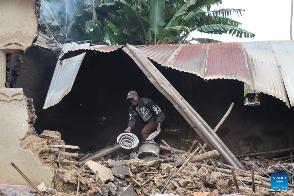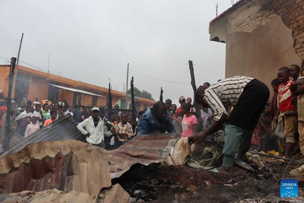 This photo taken on Aug. 17, 2025 shows the debris at the town of Oicha in Beni territory of North Kivu Province, the Democratic Republic of the Congo (DRC). According to local and military authorities, more than 50 civilians were killed between Thursday and Sunday in a series of attacks blamed on the ADF rebels in the Lubero and Beni territories of North Kivu.(Str/Xinhua)