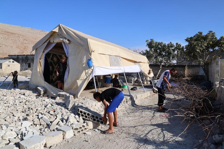 HAMA, Syria, Aug. 19 (Xinhua) -- In the flattened village of al-Hawash in Syria's central Hama province, 40-year-old Fouad Ali swings a pick into the rubble where his home once stood.