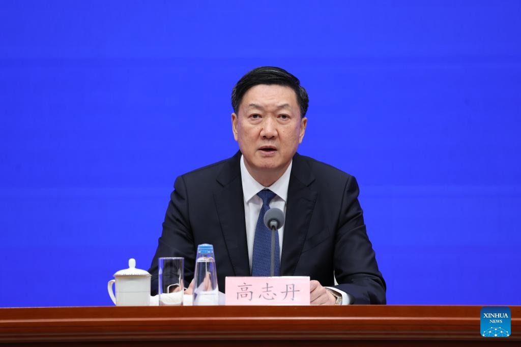 Gao Zhidan, director of China's General Administration of Sport, attends a press conference held by the State Council Information Office (SCIO) on China's achievements in building a leading country in sport during the 14th Five-Year Plan period (2021-2025) in Beijing, capital of China, Aug. 19, 2025. (Xinhua/Jin Liwang)