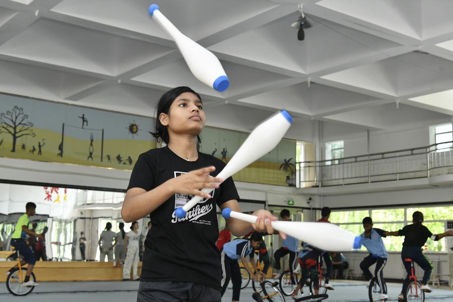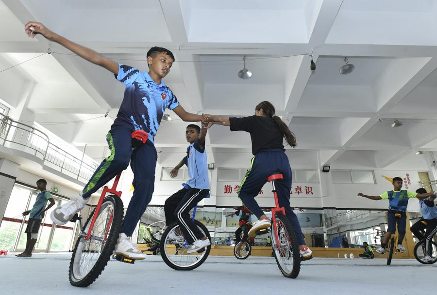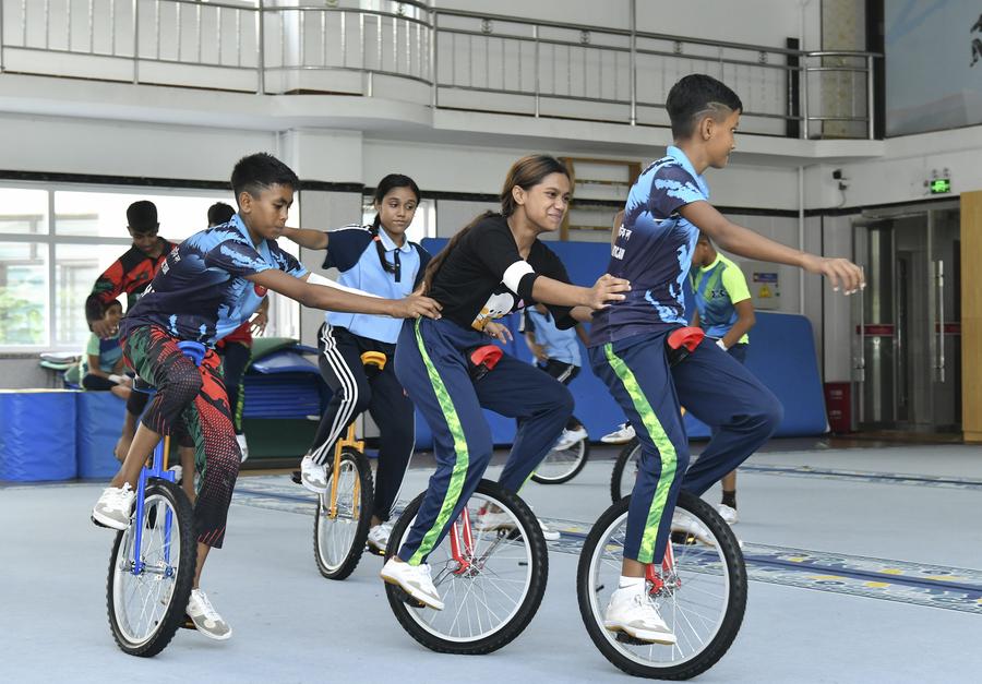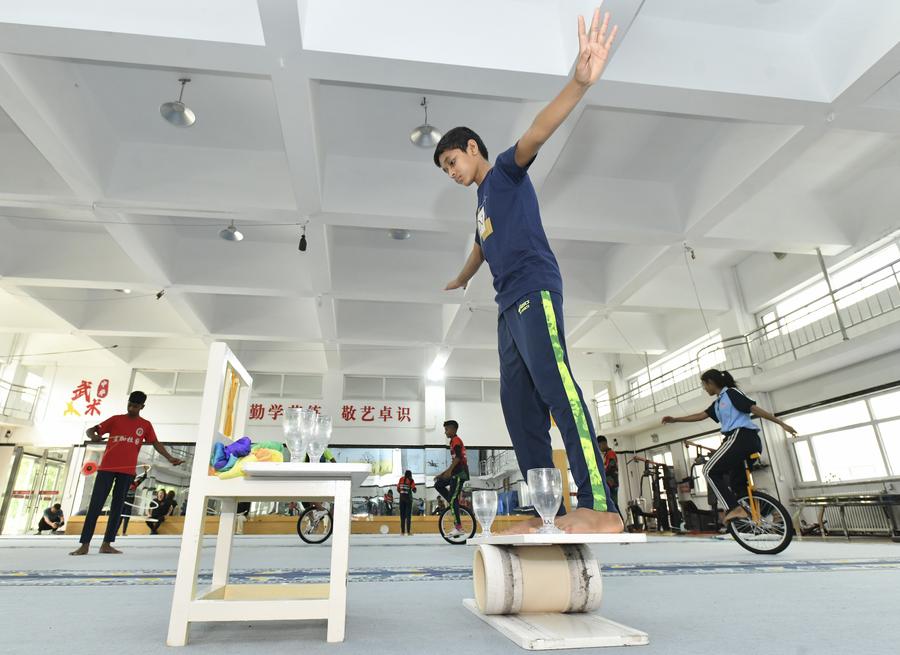 SHIJIAZHUANG, Aug. 20 (Xinhua) -- More than 20 trainees from Bangladesh have been training hard in recent days at the Hebei Wuqiao Acrobatic Art School in Wuqiao County, dubbed the "cradle of Chinese acrobatics." They are scheduled to conclude their study tour in early September and return home as acrobatic performers or educators.