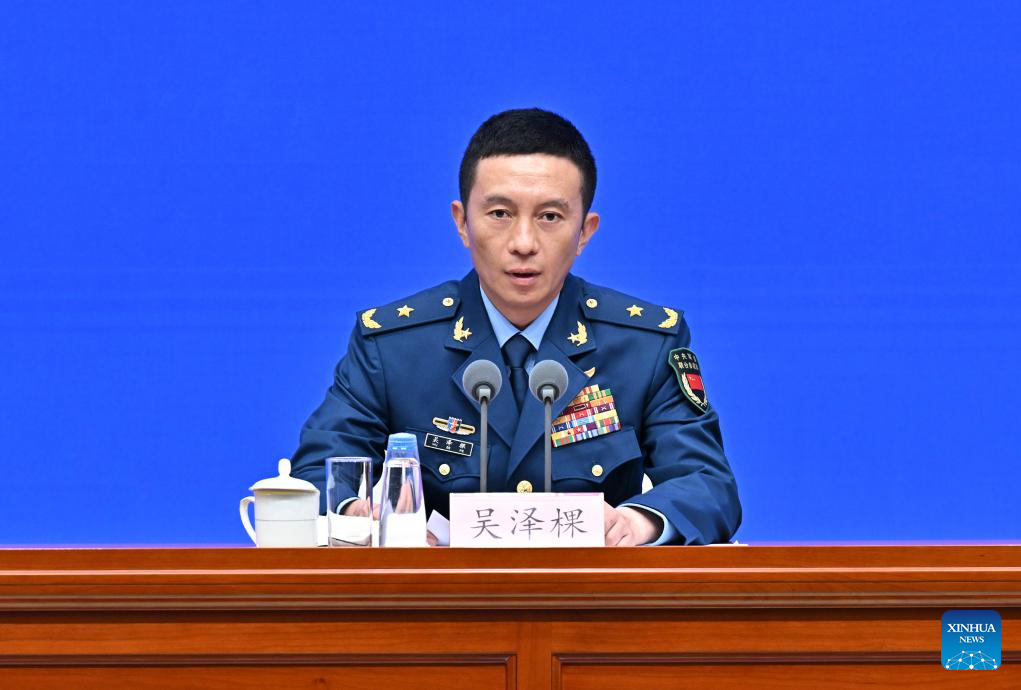Major General Wu Zeke, a senior officer of the Joint Staff Department of the Central Military Commission, speaks during a press conference on V-Day military parade preparations held by the State Council Information Office in Beijing, capital of China, Aug. 20, 2025. (Xinhua/Li Xin)