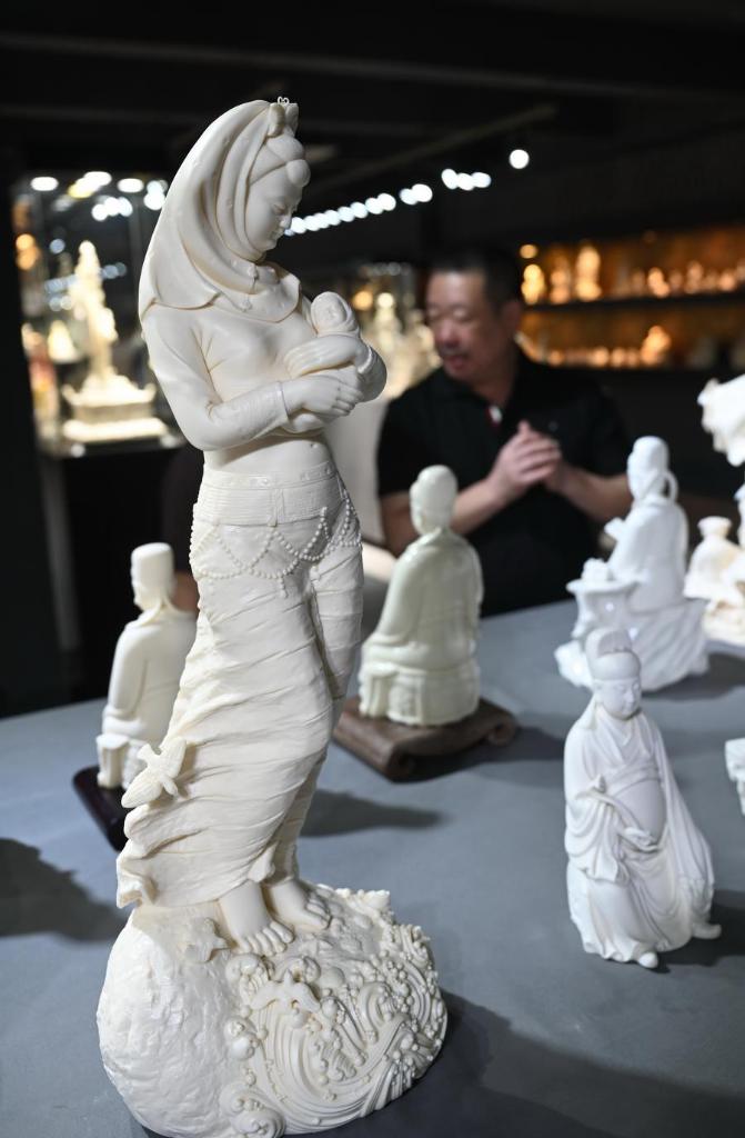 Lin Jiansheng, a master of Chinese arts and crafts, introduces the processes of making a white porcelain artwork at his studio in Dehua County, southeast China's Fujian Province, Aug. 20, 2025. (Xinhua/Xiao Xiao)A worker operates at a workshop of Quanzhou Shunmei Group Co., Ltd. in Dehua County, southeast China's Fujian Province, Aug. 20, 2025. (Xinhua/Xiao Xiao)Workers operate at a workshop of Quanzhou Shunmei Group Co., Ltd. in Dehua County, southeast China's Fujian Province, Aug. 20, 2025. (Xinhua/Lin Shanchuan)A worker is pictured at a workshop of Quanzhou Shunmei Group Co., Ltd. in Dehua County, southeast China's Fujian Province, Aug. 20, 2025. (Xinhua/Lin Shanchuan)This photo taken on Aug. 20, 2025 shows Lin Jiansheng, a master of Chinese arts and crafts, and his white porcelain artworks exhibited at his studio in Dehua County, southeast China's Fujian Province. (Xinhua/Lin Shanchuan)An aerial drone photo taken on Aug. 20, 2025 shows the porcelain product selection center at a porcelain e-commerce logistics park in Dehua County, southeast China's Fujian Province. (Xinhua/Lin Shanchuan)People visit the porcelain e-commerce logistics park in Dehua County, southeast China's Fujian Province, Aug. 20, 2025. (Xinhua/Xiao Xiao)People engage in porcelain coloring experience at Quanzhou Shunmei Group Co., Ltd. in Dehua County, southeast China's Fujian Province, Aug. 20, 2025. (Xinhua/Xiao Xiao)A boy learns about porcelain artworks exhibited at Quanzhou Shunmei Group Co., Ltd. in Dehua County, southeast China's Fujian Province, Aug. 20, 2025. (Xinhua/Xiao Xiao)■