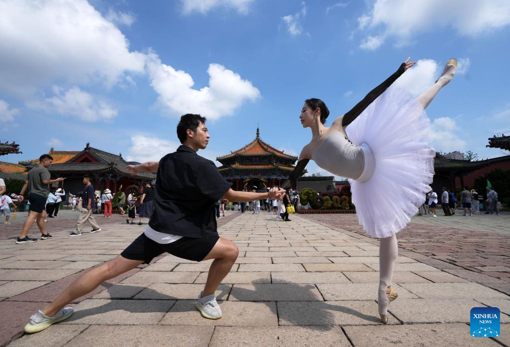 Ballet dancers perform at the Shenyang Palace Museum in Shenyang, northeast China's Liaoning Province, July 30, 2025.