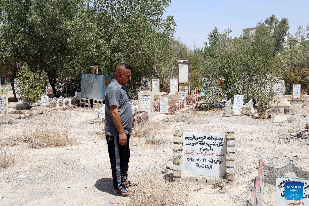 A man stands at a cemetery for the Islamic State (IS) victims in Fallujah, Iraq, on Aug. 16, 2025. (Xinhua/Khalil Dawood)