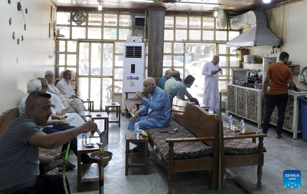 This photo taken on Aug. 16, 2025 shows people at a cafe in Fallujah, Iraq. (Xinhua/Khalil Dawood)