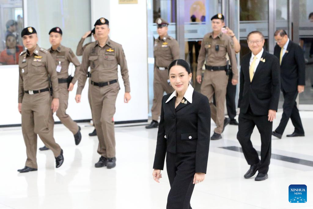 BANGKOK, Aug. 21 (Xinhua) -- Suspended Thai Prime Minister Paetongtarn Shinawatra attended a constitutional court hearing on Thursday in a case seeking her dismissal over alleged ethics violations.