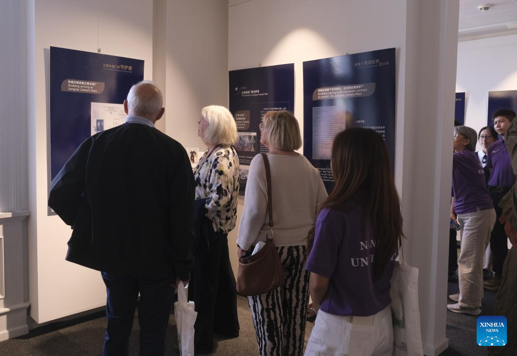 This photo taken on Aug. 21, 2025 shows the opening ceremony of the exhibition "My Friend: Bernhard Arp Sindberg" in Copenhagen, Denmark. (Xinhua/Zhang Yuliang)