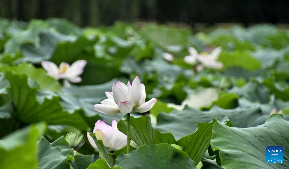 Lotus flowers in full blossom are seen at Yuanmingyuan Park in Beijing, capital of China, on Aug. 21, 2025. (Xinhua/Li Xin)