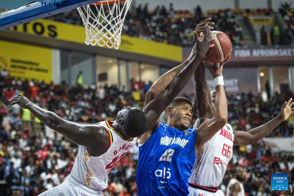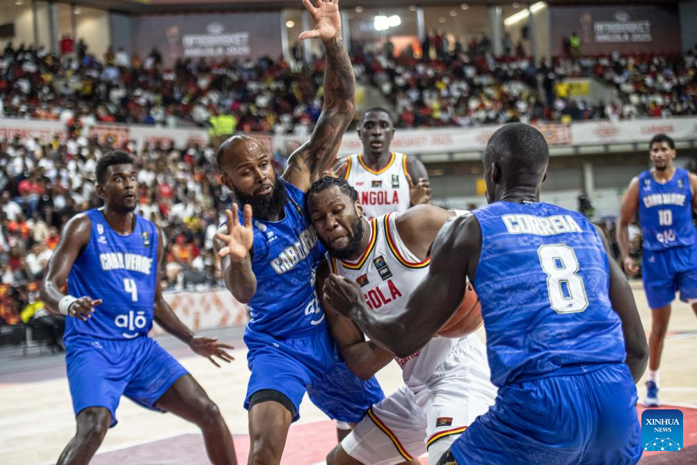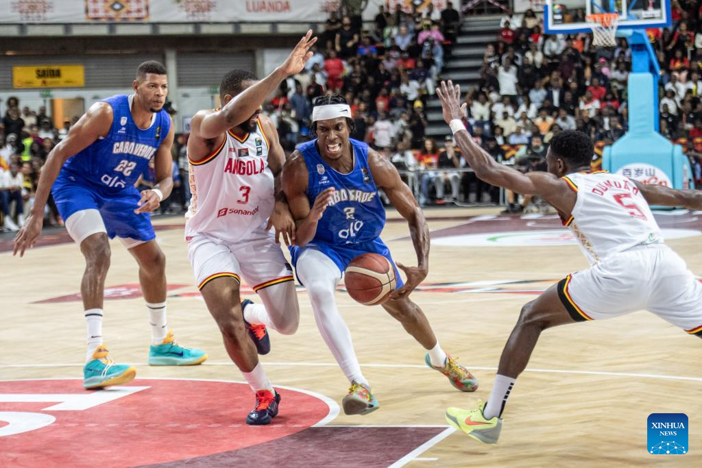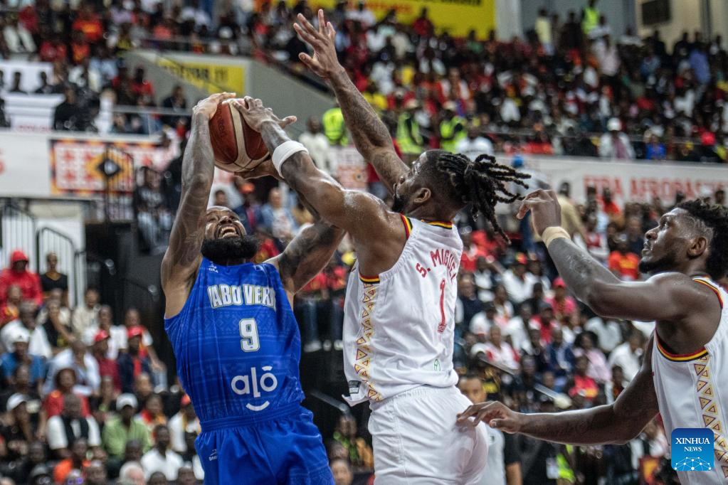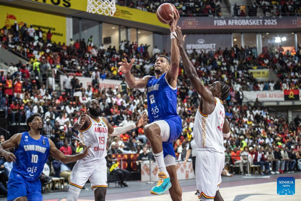 Cape Verde's Will Tavares (2nd R) breaks through during the quarterfinal between Angola and Cape Verde at the FIBA AfroBasket 2025 in Luanda, Angola, Aug. 21, 2025. (Xinhua/Wang Guansen)