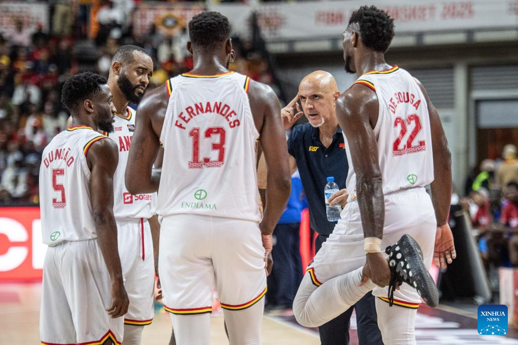 Angola's head coach Jose Claros Canals (2nd R) communicates with players during the quarterfinal between Angola and Cape Verde at the FIBA AfroBasket 2025 in Luanda, Angola, Aug. 21, 2025. (Xinhua/Wang Guansen)