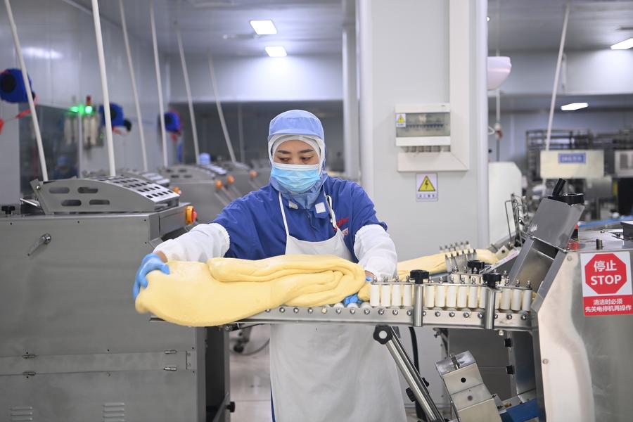 A worker operates at the smart workshop of Panpan Foods in Jinjiang, southeast China's Fujian Province, Aug. 19, 2025. (Xinhua/Xiao Xiao)