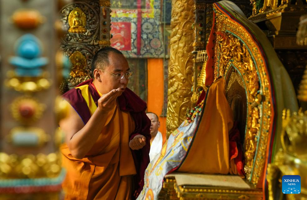 Panchen Erdeni Chos-kyi rGyal-po visits Raiqen Monastery in Lhasa, southwest China's Xizang Autonomous Region, July 29, 2025. Panchen Erdeni Chos-kyi rGyal-po performed his regular duties at the Xizang branch of the Buddhist Association of China and participated in religious and social activities in southwest China's Xizang Autonomous Region from June 30 to Aug. 20. (Xinhua/Jigme Dorje)