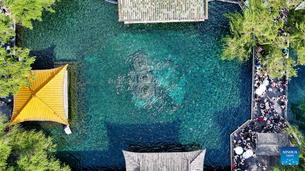 An aerial drone photo taken on Aug. 22, 2025 shows the Baotu Spring in Jinan, east China's Shandong Province. (Xinhua/Xu Suhui)