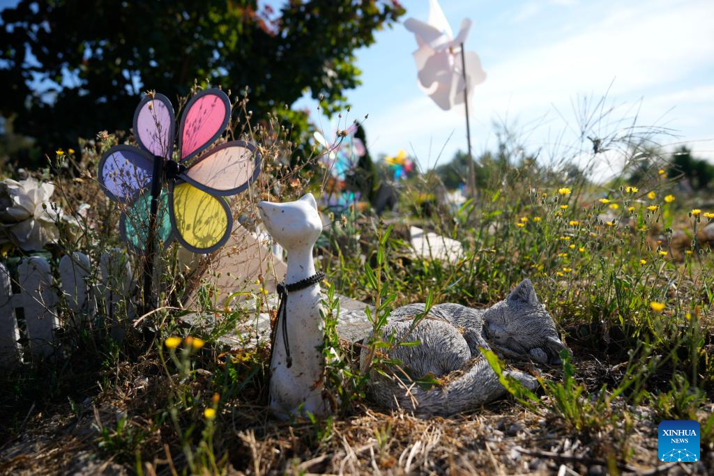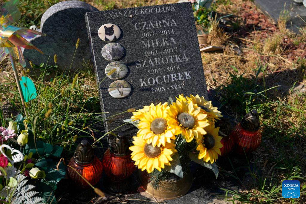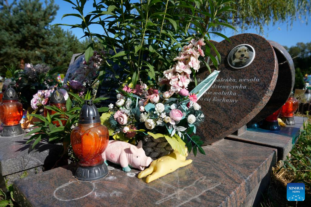 This photo taken on Aug. 22, 2025 shows a view of the "Dog's Fate" pet cemetery in Nowy Konik, Poland. Founded in 1991, "Dog's Fate" is the country's first pet cemetery, providing a resting place for thousands of dogs, cats, and other small animals. (Photo by Jaap Arriens/Xinhua)