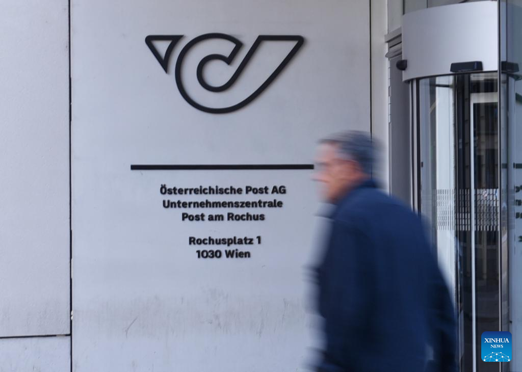 A man walks past the main entrance of Austrian Post's headquarters in Vienna, Austria, Aug. 24, 2025. Multiple postal operators across Europe are suspending most package shipments to the United States, citing uncertainty, confusion and rising costs linked to forthcoming U.S. customs regulations on low-value imports. By Saturday, postal operators in more than a dozen countries, including France, Britain, Italy, Austria, Finland, Sweden, Latvia, Croatia, Slovenia, and Bosnia and Herzegovina, had announced either suspensions or severe restrictions on parcels bound for the United States. (Xinhua/He Canling)