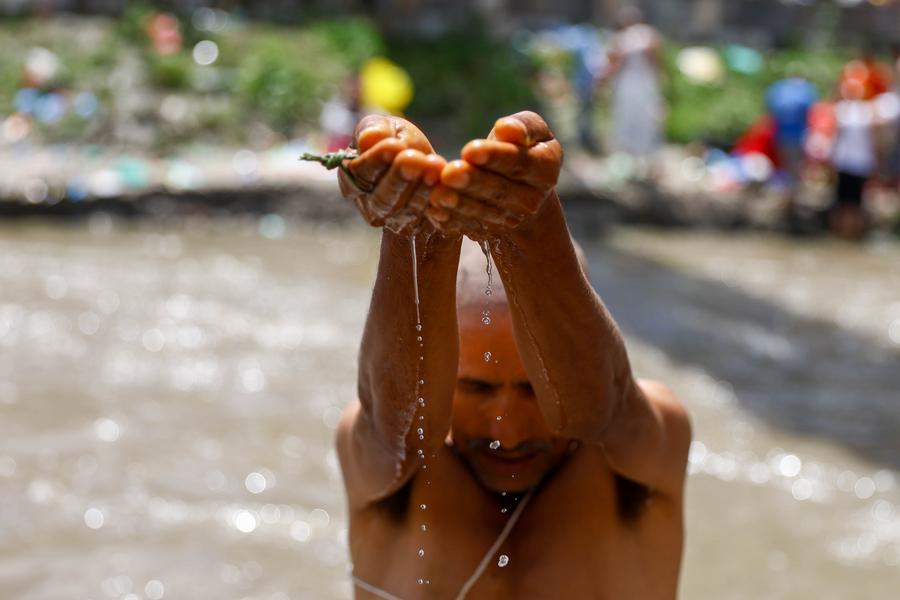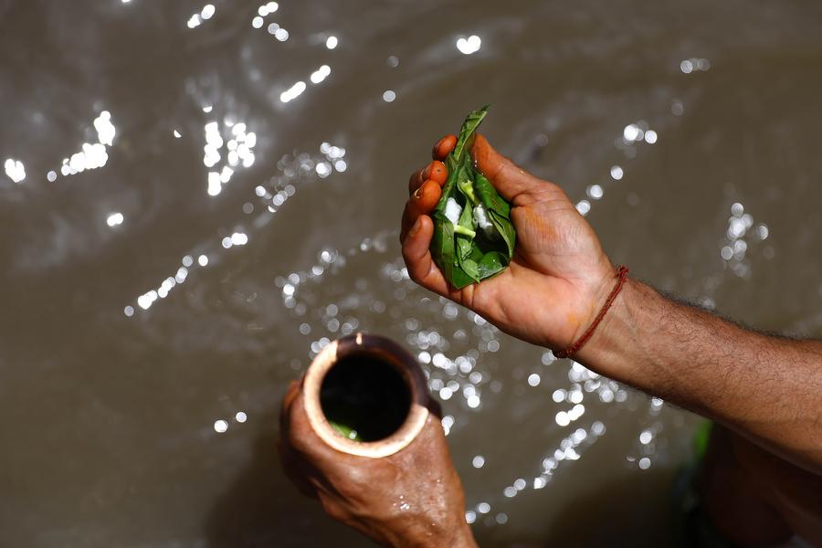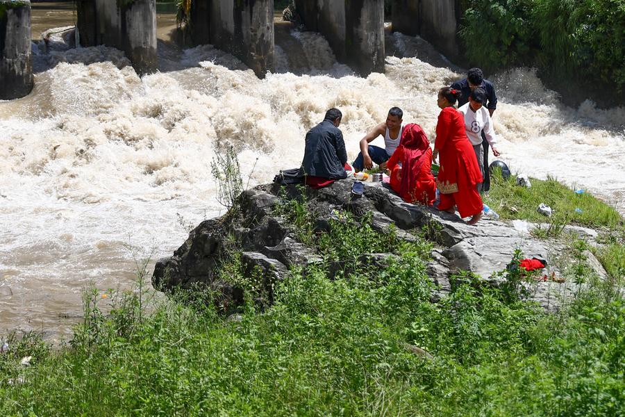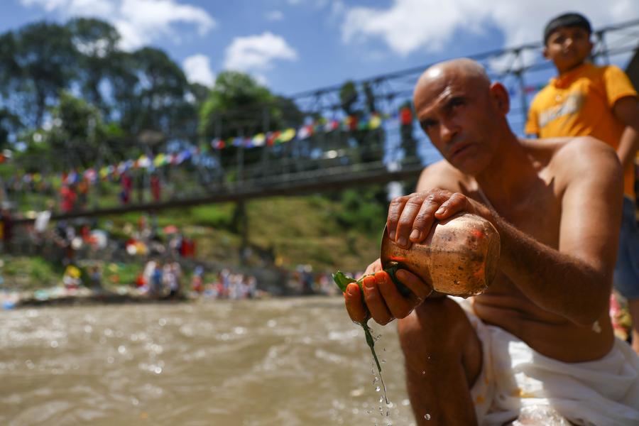 KATHMANDU, Aug. 24 (Xinhua) -- People celebrated the Kuse Aunsi, or Father's Day, at Gokarna Temple on the banks of the Bagmati River in Kathmandu, Nepal.