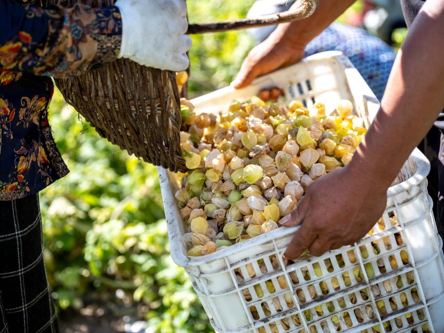 Villagers pick golden berries at a field in Morin Dawa Daur Autonomous Banner of Hulun Buir, north China's Inner Mongolia Autonomous Region, on Aug. 24, 2025. (Xinhua/Ma Jinrui)This photo taken on Aug. 24, 2025 shows freshly picked golden berries in Morin Dawa Daur Autonomous Banner of Hulun Buir, north China's Inner Mongolia Autonomous Region. (Xinhua/Ma Jinrui)A villager sorts the golden berries with a machine at a warehouse in Morin Dawa Daur Autonomous Banner of Hulun Buir, north China's Inner Mongolia Autonomous Region, on Aug. 24, 2025. (Xinhua/Ma Jinrui)A villager promotes golden berries via livestreaming in Morin Dawa Daur Autonomous Banner of Hulun Buir, north China's Inner Mongolia Autonomous Region, on Aug. 24, 2025. (Xinhua/Ma Jinrui)An aerial drone photo taken on Aug. 24, 2025 shows villagers picking golden berries at a field in Morin Dawa Daur Autonomous Banner of Hulun Buir, north China's Inner Mongolia Autonomous Region. (Xinhua/Ma Jinrui)■