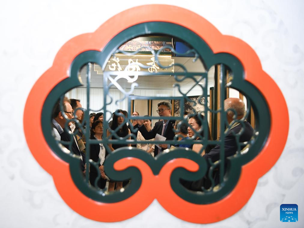 People view the exhibition "Anshan Cuijin - an Exhibition of Chinese Life Aesthetics" at the China Cultural Center in Bern, Switzerland, Aug. 22, 2025.