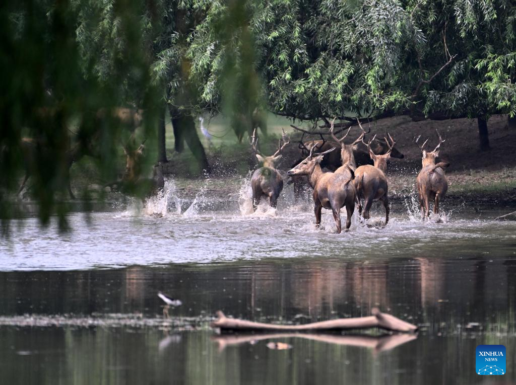 Milu deer are pictured at Milu Park in Beijing, capital of China, Aug. 18, 2025.