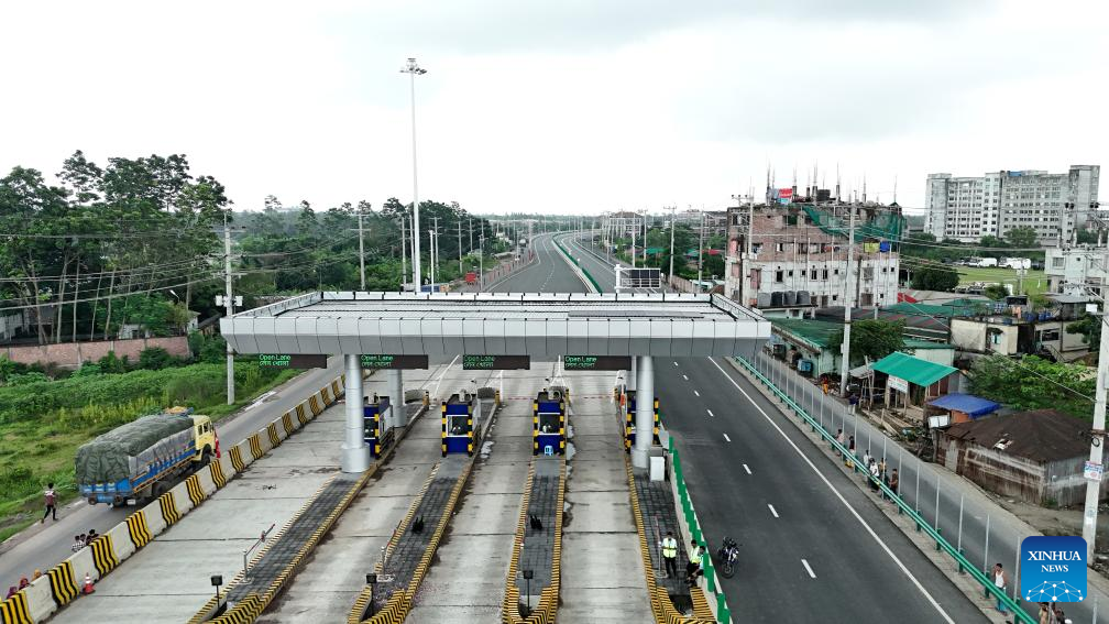 This photo taken on Aug. 24, 2025 shows a view of a toll gate on the Dhaka Bypass Expressway in Dhaka, Bangladesh, on Aug. 24, 2025.