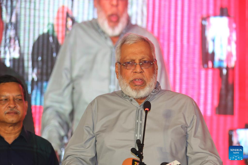 Muhammad Fouzul Kabir Khan, the Bangladeshi interim government's adviser to the ministries of road transport and bridges, railways, and power, energy and mineral resources, cuts the ribbon at an opening ceremony of the first section of the Dhaka Bypass Expressway in Dhaka, Bangladesh on Aug. 24, 2025.