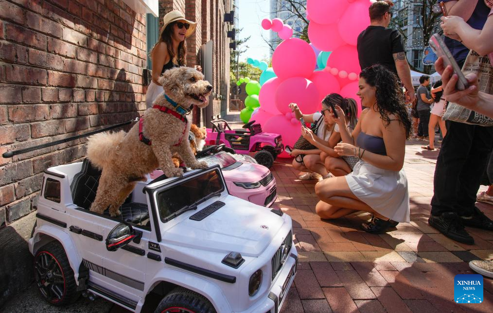 A dog poses on a mini car for photos during the "Pet-A-Palooza" event in Vancouver, British Columbia, Canada, Aug. 24, 2025. "Pet-A-Palooza," also known as the Day of the Dog, is an annual summer celebration for local pups and their owners. The event offered a variety of dog-related activities and entertainment, attracting thousands of dog owners and their furry companions. (Photo by Liang Sen/Xinhua)
