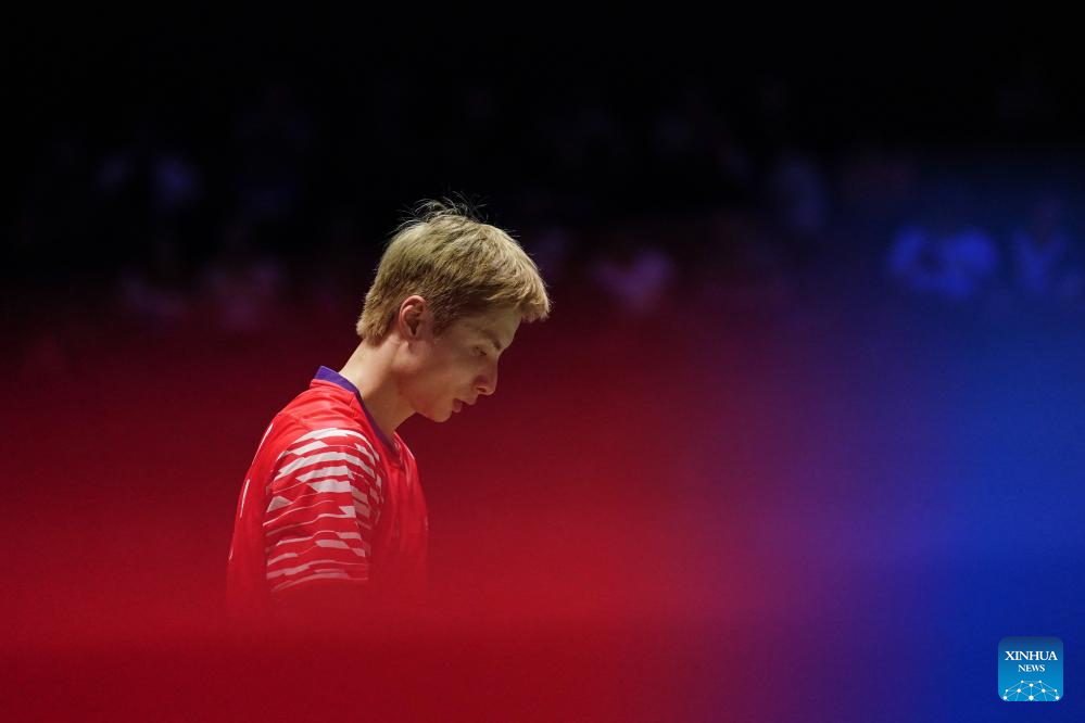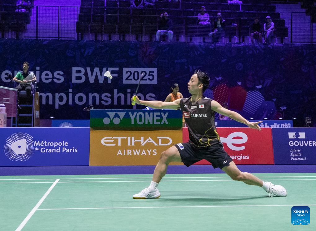 Tanaka Yushi competes during the men's singles first round match between Li Shifeng of China and Tanaka Yushi of Japan at the BWF World Championships 2025 in Paris, France, Aug. 25, 2025. (Xinhua/Zhang Fan)