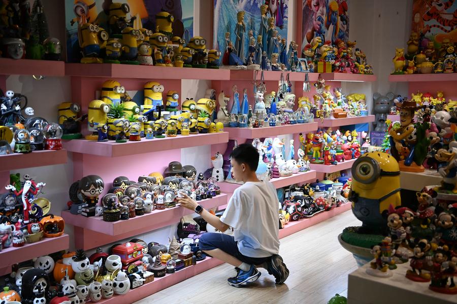 FUZHOU, Aug. 26 (Xinhua) -- When Kang Zhican, a 24-year-old primary school teacher, stepped into the ceramics cultural center in Dehua County, in the city of Quanzhou, east China's Fujian Province, he was instantly transported into a dazzling world where vibrant ceramic figurines of Mickey Mouse, Elsa and other pop-culture icons sparkled with artistry and whimsy, capturing his imagination like a real-life Disneyland.