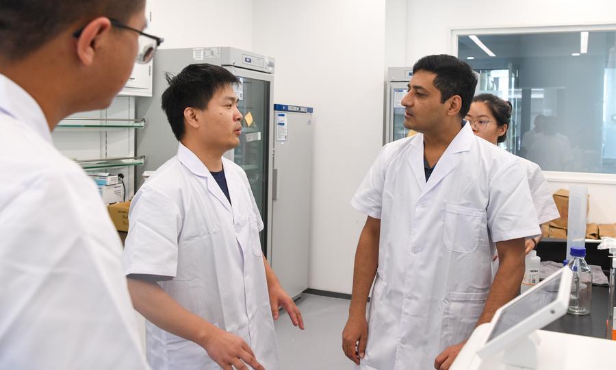 Waseem Raza works at a tropical crop breeding lab of Chinese Academy of Tropical Agricultural Sciences in Sanya, south China's Hainan Province, July 29, 2025. (Xinhua/Yang Guanyu)Waseem Raza (1st L) works at a tropical crop breeding lab of Chinese Academy of Tropical Agricultural Sciences in Sanya, south China's Hainan Province, July 29, 2025. (Xinhua/Yang Guanyu)Waseem Raza talks with his colleague at a tropical crop breeding lab of Chinese Academy of Tropical Agricultural Sciences in Sanya, south China's Hainan Province, July 29, 2025. (Xinhua/Yang Guanyu)Waseem Raza (2nd R) talks with his colleague at a tropical crop breeding lab of Chinese Academy of Tropical Agricultural Sciences in Sanya, south China's Hainan Province, July 29, 2025. (Xinhua/Yang Guanyu)