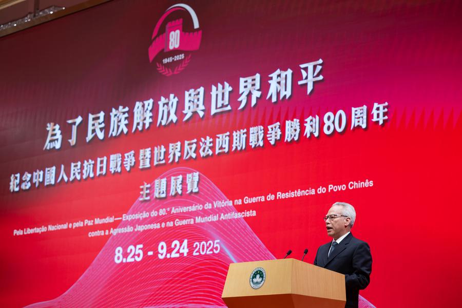 MACAO, Aug. 26 (Xinhua) -- The Exhibition Commemorating the 80th Anniversary of the Victory in the Chinese People's War of Resistance Against Japanese Aggression and the World Anti-Fascist War opened on Monday in China's Macao Special Administrative Region (SAR), with around 280 government officials and representatives from various sectors of society attending.