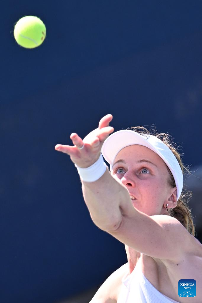 Liudmila Samsonova of Russia serves during the women's singles first round match against Yuan Yue of China at the 2025 US Open tennis championships in New York, the United States, on Aug. 25, 2025. (Xinhua/Li Rui)