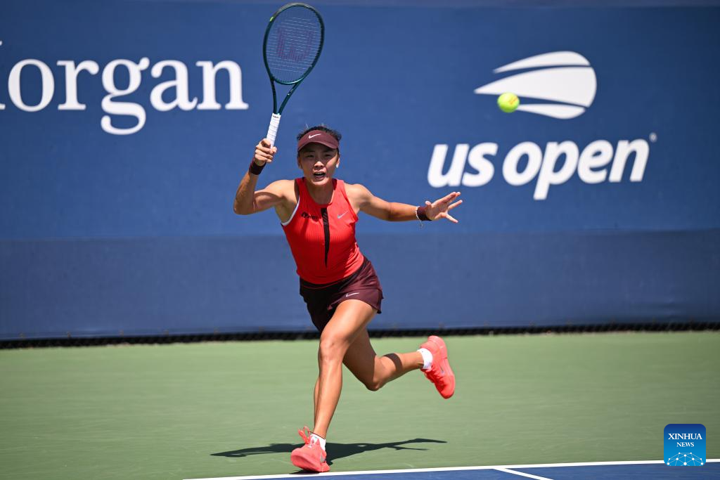 Yuan Yue of China returns a shot during the women's singles first round match against Liudmila Samsonova of Russia at the 2025 US Open tennis championships in New York, the United States, on Aug. 25, 2025. (Xinhua/Li Rui)
