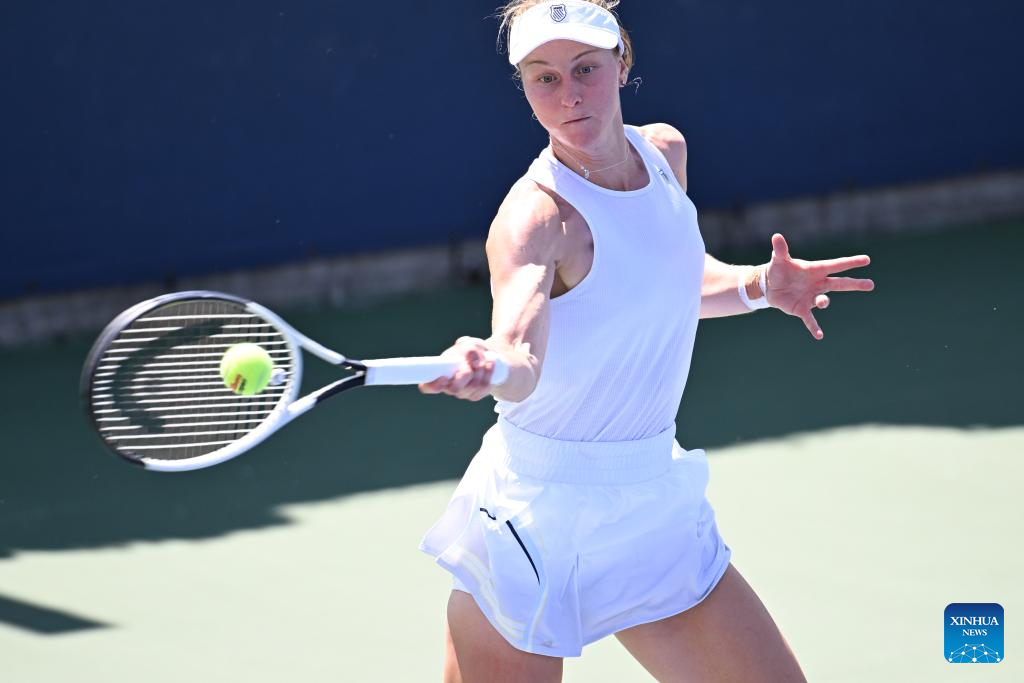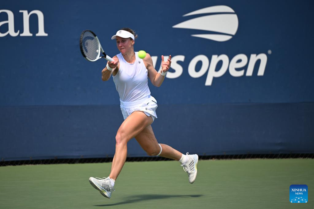 Liudmila Samsonova of Russia returns a shot during the women's singles first round match against Yuan Yue of China at the 2025 US Open tennis championships in New York, the United States, on Aug. 25, 2025. (Xinhua/Li Rui)